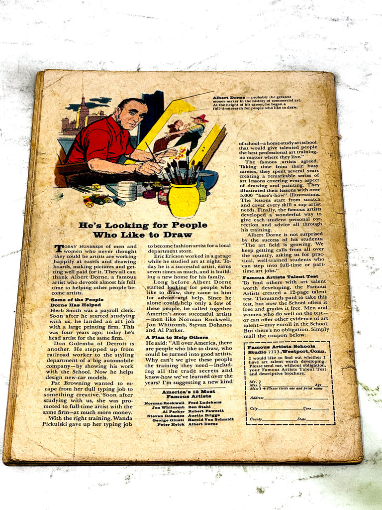GRADING NOTES - Spine creases, chipping and wear along spine edge. Green marker pen mark to middle of front cover. Creasing to front cover. Some wear and chipping to bottom edge of front cover. Series of small creases to top and bottom right hand corners of front cover. Light wear to top edge of front cover.  Rusting to bottom staple. Heavy discolouration and scuffing to back cover. Creasing to top left hand corner of back cover