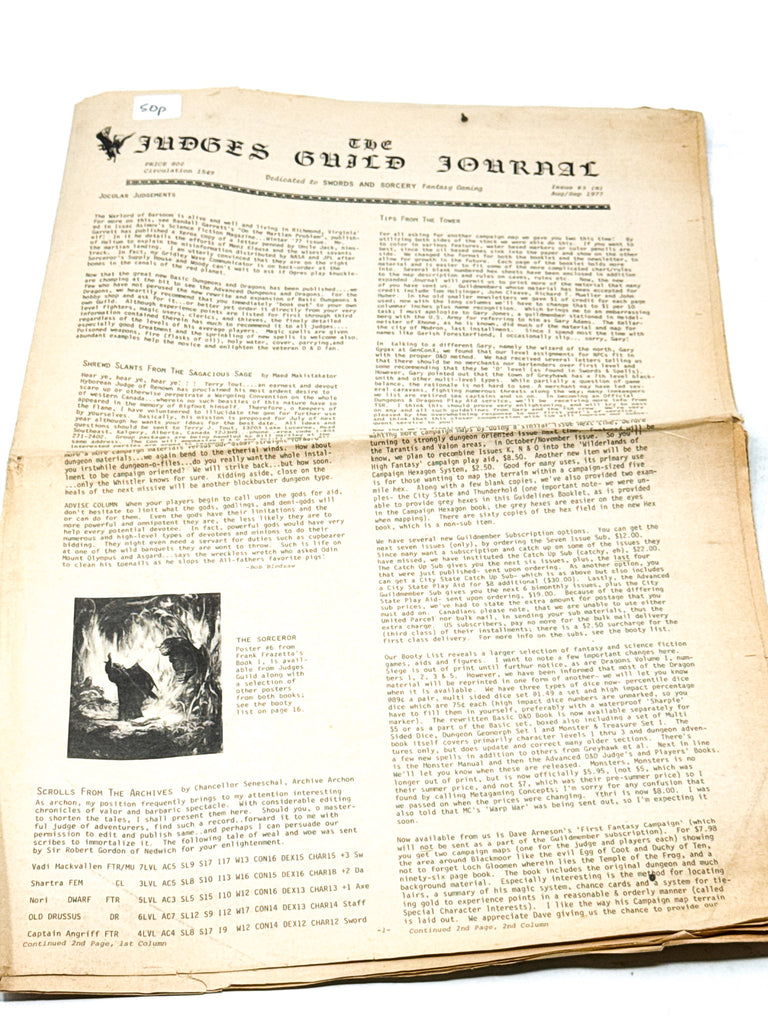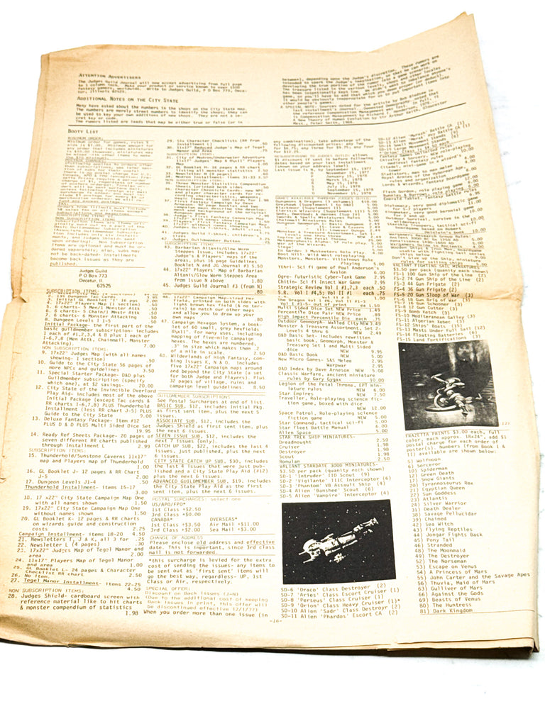 ISSUE NOTES - Broadsheet style paper 'Journal' published by The Judges Guild dedicated to Swords & Sorcery fantasy gaming, back when the TTRPGs were in their infancy.