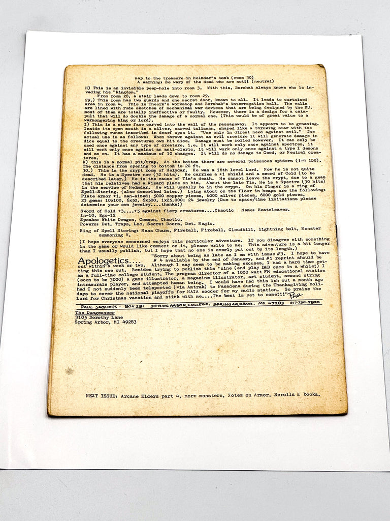 ISSUE NOTES - A5 US RPG and Fantasy fanzine edited by Paul Jacquays